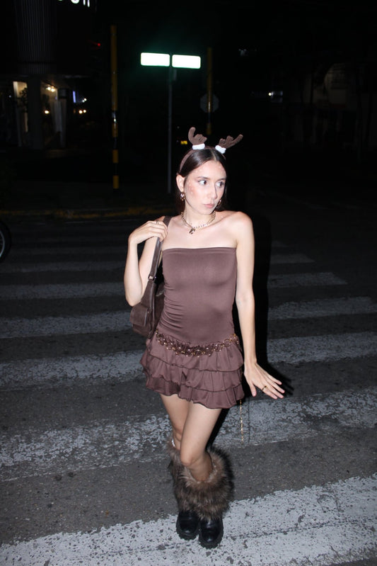 AgotadoVESTIDO MINI GOLAS MARRÓN